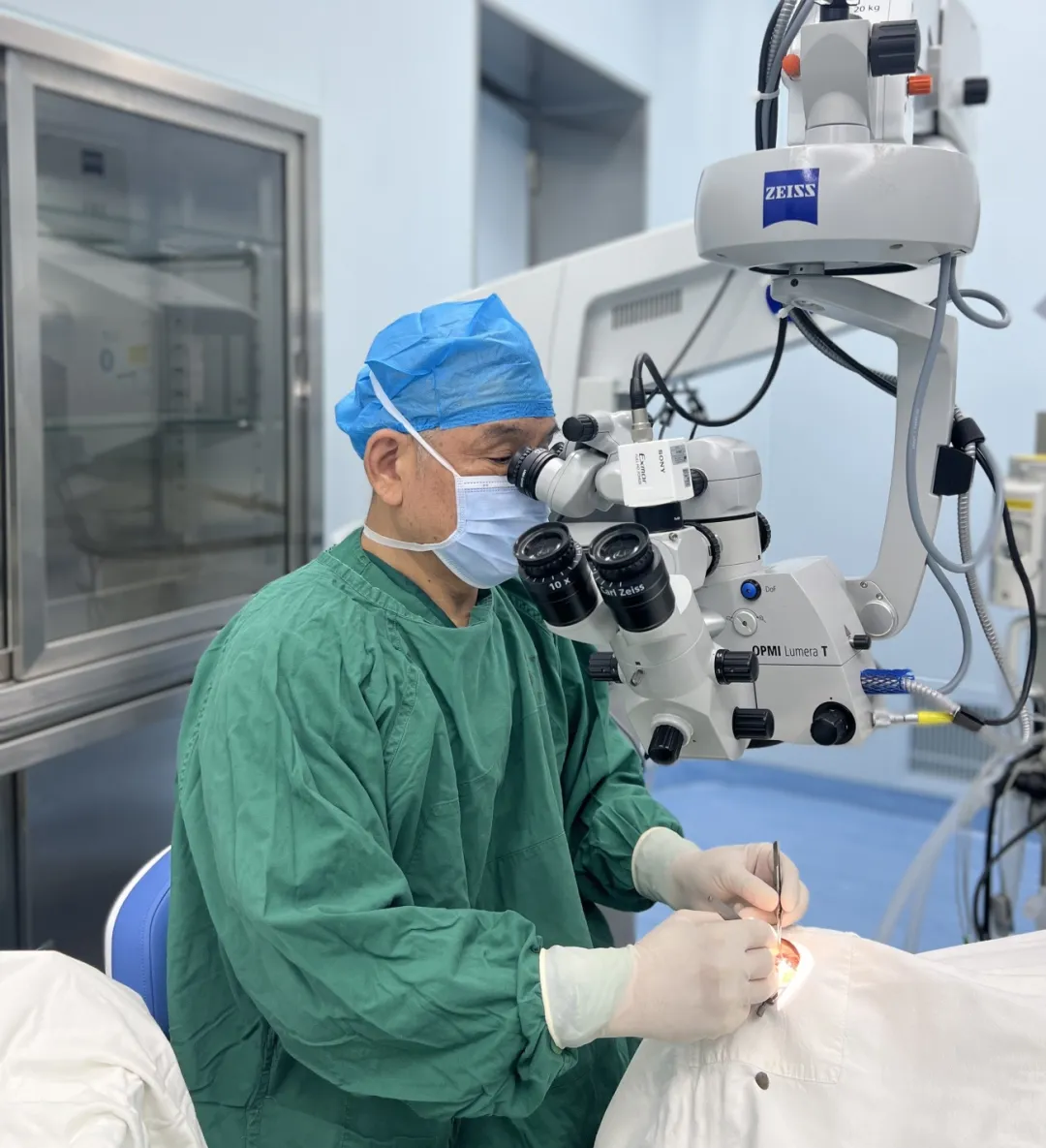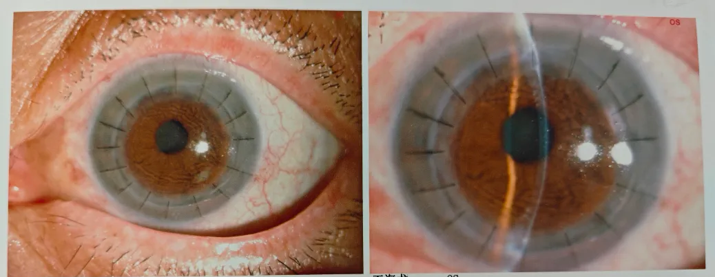 當(dāng)天下午,吳護(hù)平院長(zhǎng)接診了陳伯伯。經(jīng)過(guò)檢查確認(rèn),陳伯伯結(jié)膜有輕微充血,角膜上皮有缺損,角膜上有不規(guī)則灰白色混濁,深度達(dá)到基質(zhì)層,視力基本只剩光感,屬于角膜內(nèi)皮營(yíng)養(yǎng)不良。完善所有的術(shù)前檢查,當(dāng)天傍晚,陳伯伯就進(jìn)了手術(shù)室,由吳護(hù)平院長(zhǎng)親自操刀手術(shù)順利完成角膜移植手術(shù)。