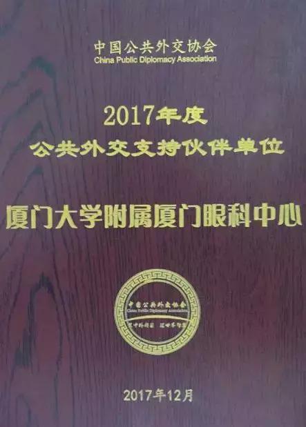 廈門大學附屬廈門眼科中心董事長蘇慶燦表示“榮獲‘公共外交支持伙伴單位’是國家、政府和公益組織對中心醫(yī)療技術(shù)水平和社會責任感的高度肯定,更是對中心20幾年來始終堅持‘不論貧富貴賤,讓每個人都有一雙健康明亮的眼睛’價值觀的高度贊揚。“