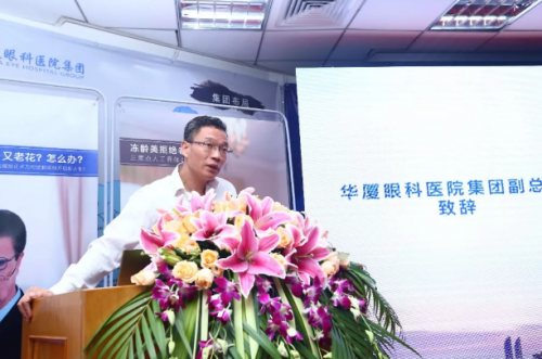 華廈眼科醫(yī)院集團(tuán)副總裁、廈門(mén)眼科中心執(zhí)行院長(zhǎng)李曉峰為會(huì)議致辭
