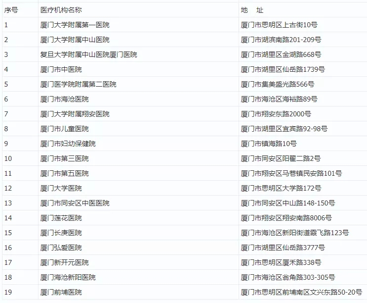 附:廈門市醫(yī)療機(jī)構(gòu)發(fā)熱門診目錄