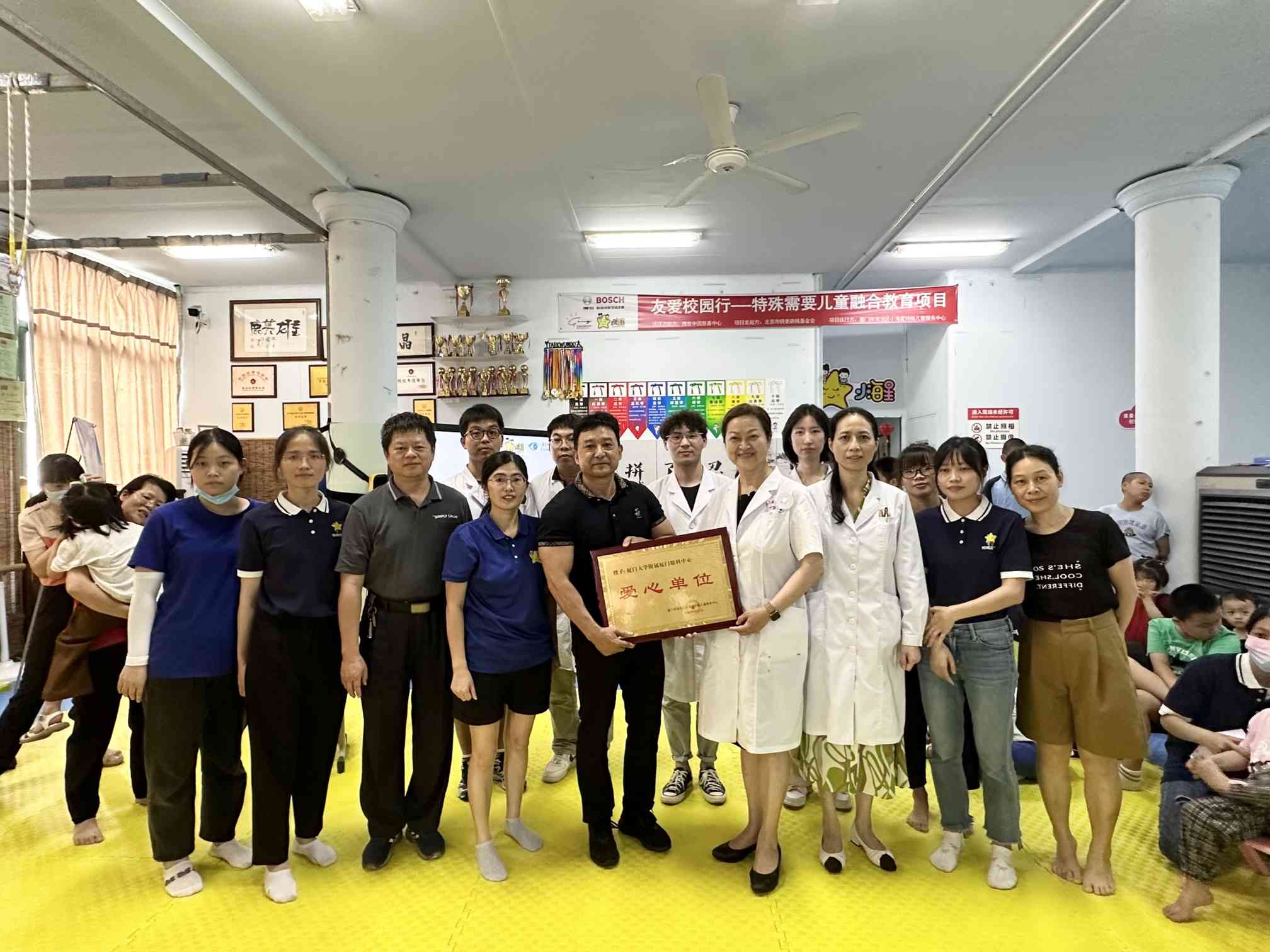 活動過程中,海滄區(qū)殘疾人聯合會周偉儒理事長、廈門市海滄區(qū)小海星特殊兒童服務中心理事長梁潔等人代表授予醫(yī)院“愛心單位”的稱號,并對醫(yī)院的善舉給予了真誠的感謝。