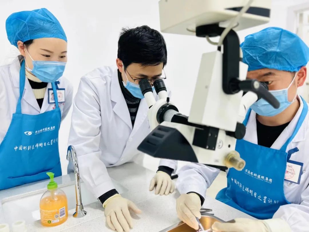 ▲修陽暉(中)帶教中國眼科明日之星學(xué)員進行動物眼顯微手術(shù)操作