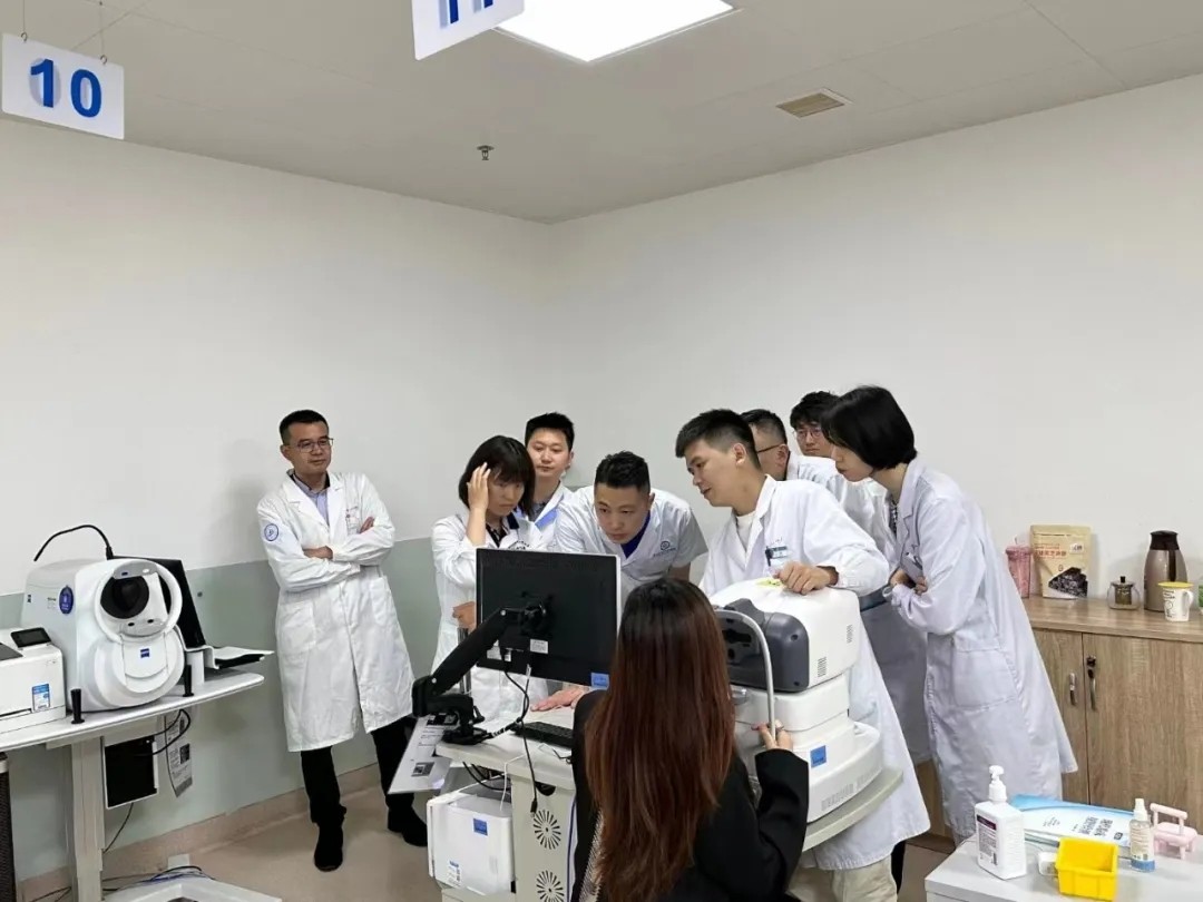 聽完精彩的授課,參培醫(yī)師在史小玲主任的帶領(lǐng)下來到廈門眼科中心門診進(jìn)行 門診觀摩 ,實地了解和學(xué)習(xí)ICL術(shù)前檢查和術(shù)后觀察處理流程,通過技能操作進(jìn)一步了解ICL晶體植入手術(shù)的各項要點。