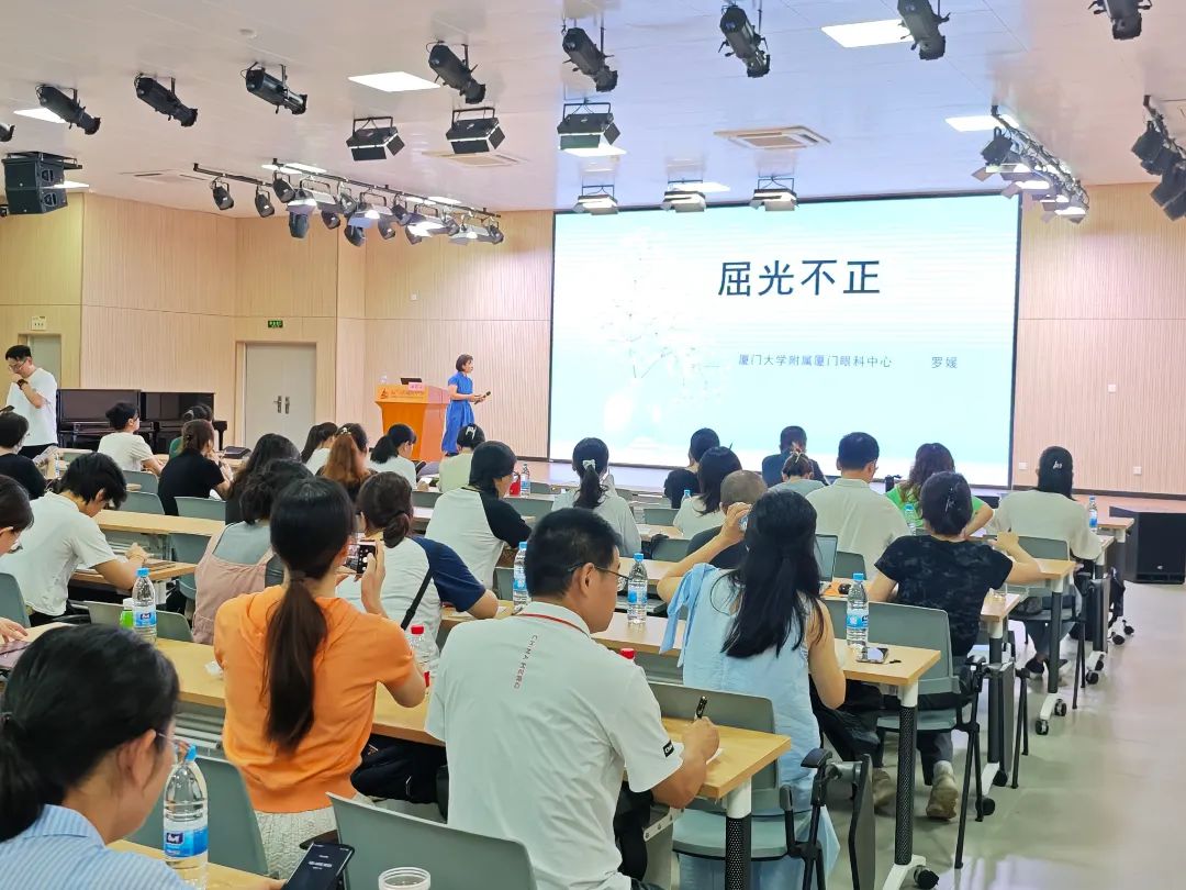 為深入實(shí)施近視防控戰(zhàn)略、提高青少年近視防控的全民意識(shí),日前,廈門眼科中心應(yīng)思明區(qū)教育局邀請(qǐng),于全國(guó)近視防控宣傳教育月到來之際,由資深視光醫(yī)生羅媛為思明區(qū)中小學(xué)和幼兒園老師、校醫(yī)進(jìn)行一場(chǎng)生動(dòng)而實(shí)用的近視防控講座。