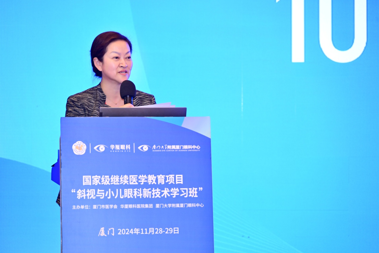 廈門眼科中心業(yè)務(wù)副院長(zhǎng)、斜視與小兒眼科學(xué)科帶頭人潘美華教授主持開(kāi)幕式