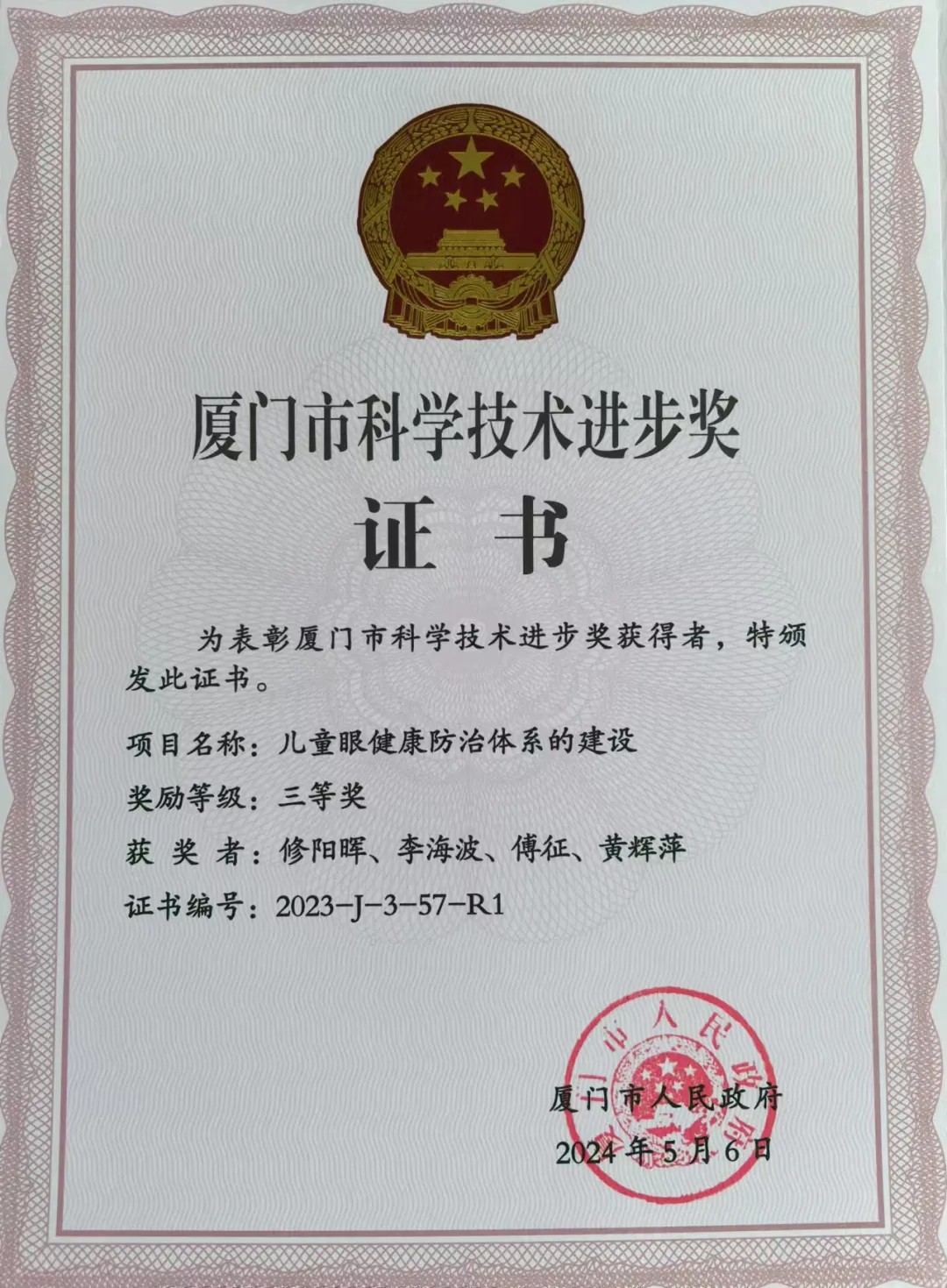 作為該項(xiàng)目的第一、第二完成人,廈門(mén)眼科中心修陽(yáng)暉博士、李海波博士長(zhǎng)期致力于眼科疾病的研究和治療,在小兒眼病、眼外傷、眼底病等領(lǐng)域均取得了顯著成果: