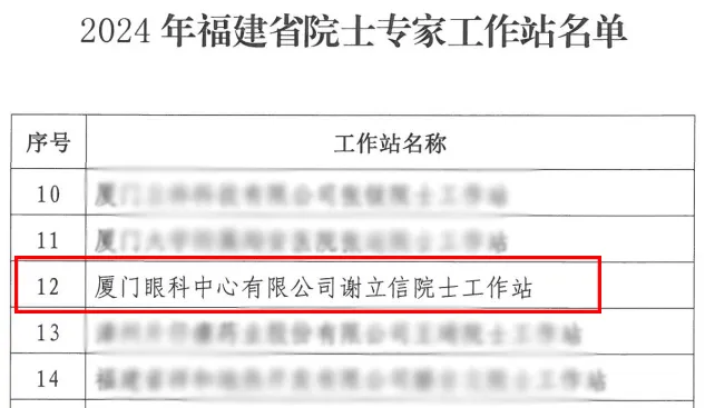 廈門眼科中心閃耀“【文章導(dǎo)讀】近日,中共福建省委組織部、福建省科學(xué)技術(shù)協(xié)會、福建省財政廳、福建省科學(xué)技術(shù)廳認(rèn)定18家單位為2024年福建省院士專家工作站,廈門眼科中心有限公司謝立信院士工作站赫然在列。
