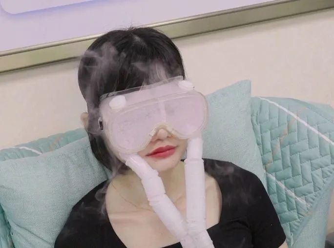 佩戴專用眼罩,通過(guò)儀器將藥物霧化成細(xì)小分子,恒溫輸出到眼罩內(nèi),在眼罩內(nèi)形成封閉的空間。