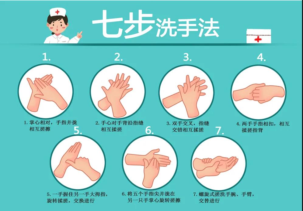 接觸外界環(huán)境后,要用流水和除菌洗手液按照七步洗手法嚴格洗手。
